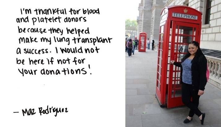 Rodriguez received both blood and platelet transfusions as part of her treatment. This past January marked four years since Rodriguez’s transplant, and she has no complications. Rodriguez is so grateful for the generous donations that played a role in her recovery.