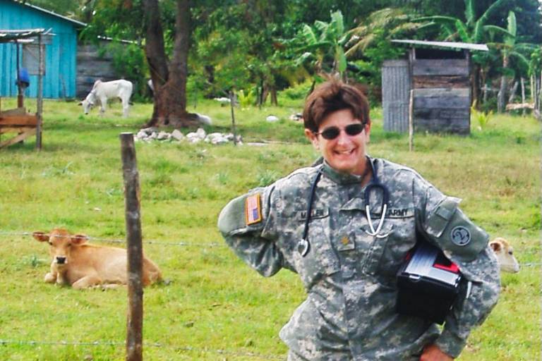 When Andrea completed nursing school, she joined the Air Force and served as an anesthesiology nurse for 13 years. After separating from the Air Force, she attended veterinary school and upon graduating joined the U.S. Army Reserve. For ten years she served as a vet, the animal kind, work that sent her to Kosovo to care for the military’s explosive sniffing canines. In her free time, Andrea volunteered to care for the health and well-being of the community’s pets.