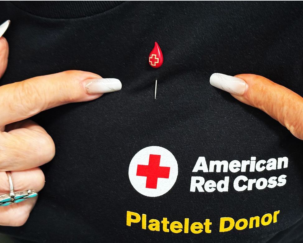 Victoria proudly wears one of her grandmother’s original blood-drop pins on her lapel. It often sparks conversation, giving her a chance to share her story and honor the woman who inspired it. Each time she donates, she carries that same legacy forward — one drop, one pin, one act of service at a time.