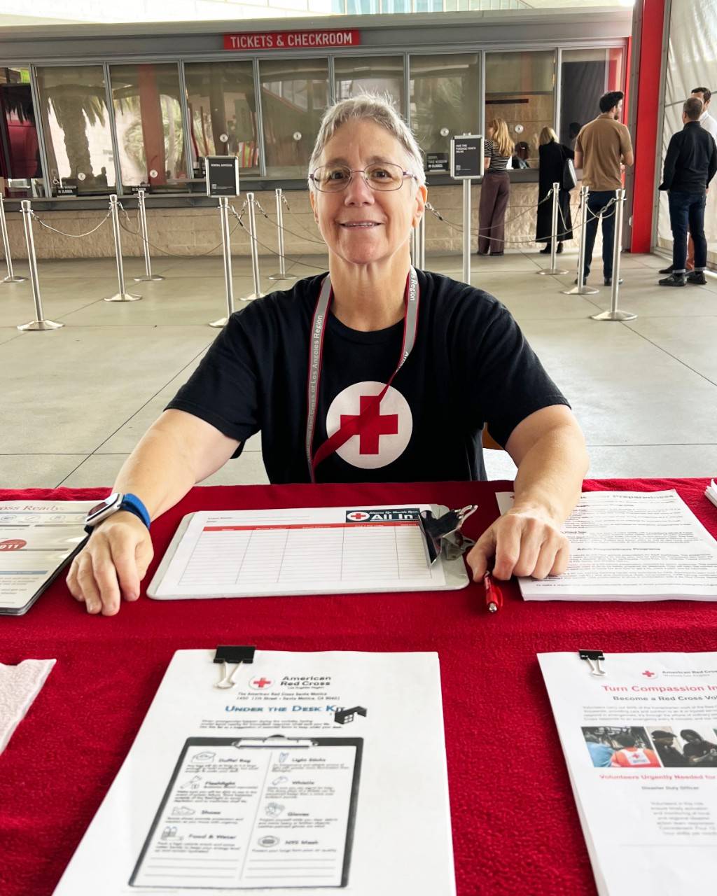 Susan Cherry, a deaf Red Cross volunteer, shares emergency preparedness resources at a community event. Despite communication challenges, she brings empathy and resilience to outreach efforts—helping others stay safe while showing that volunteers of all abilities play a vital role in building stronger, more inclusive communities. (Photos courtesy of Susan Cherry).