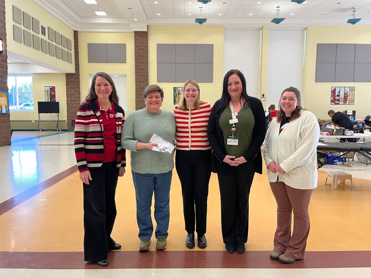 Karin presented a check to the American Red Cross on honor Julie. (L to R) Cheryl Engels, Red Cross Board Member; Karin; Jocelyn Hillard, Red Cross; Camella Mollica, Red Cross; Anna LaBanca, Karin’s daughter.
