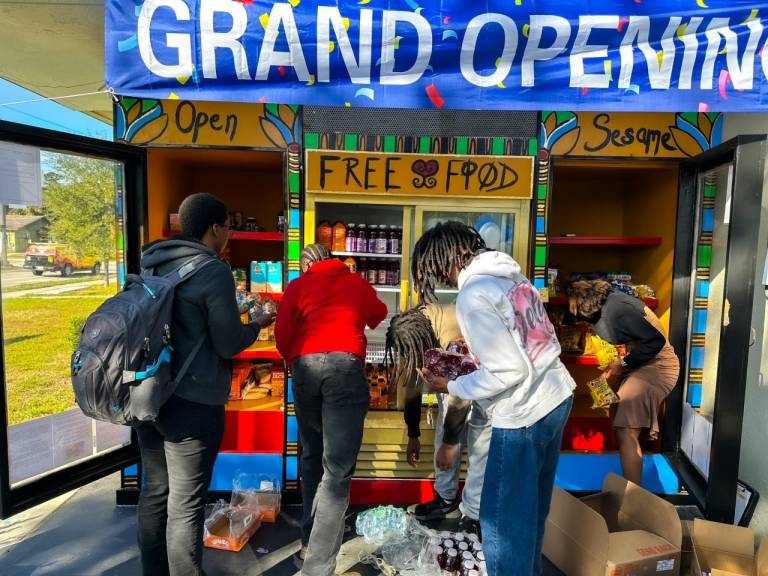 For the Sarasota Community Adaptation Program (CAP) team, this moment represents years of collaboration with the nonprofit arm of the Sarasota Housing Authority to reimagine how we could serve the Newtown community in a way that was both creative and community‑led. Newtown is widely recognized as a food desert, with no grocery stores within a two‑ to three‑mile radius. For residents without reliable transportation, access to fresh, healthy food can feel out of reach. While one refrigerator alone cannot solve food insecurity, it can open a door, offering another way for neighbors to support neighbors and meet immediate needs with dignity.
