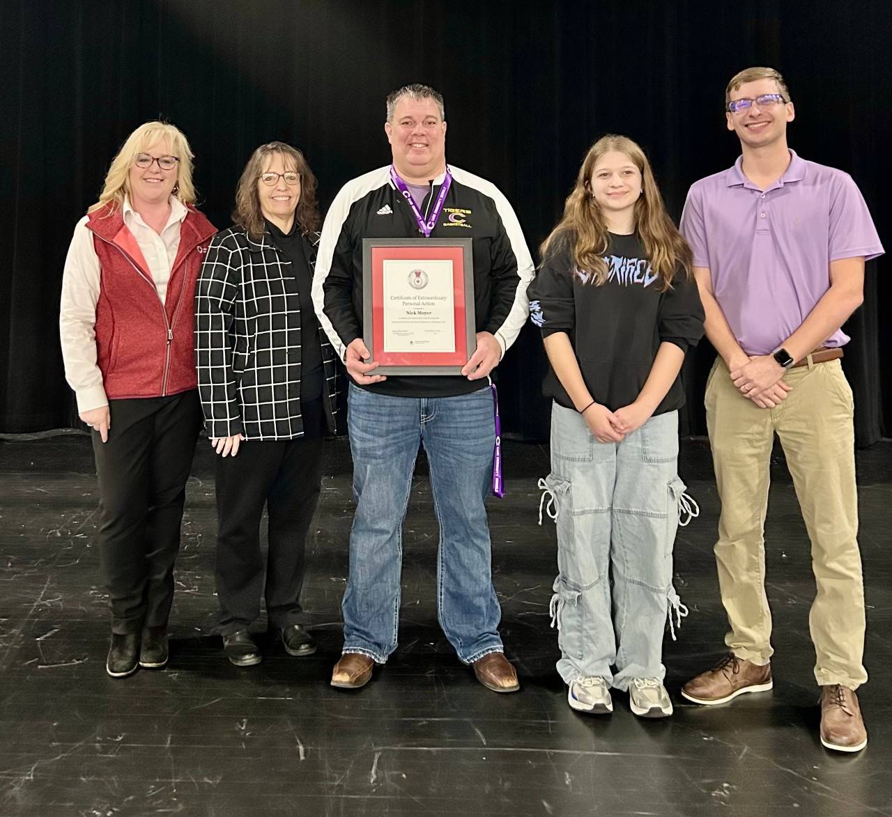 Caro (Nov. 21, 2025) – The American Red Cross today honored the assistant principal at Caro Middle School, with a Lifesaving Award for coming to the aid of a student who was choking. Nick Moyer received the American Red Cross Certificate of Extraordinary Personal Action, which includes a certificate and lapel pin.