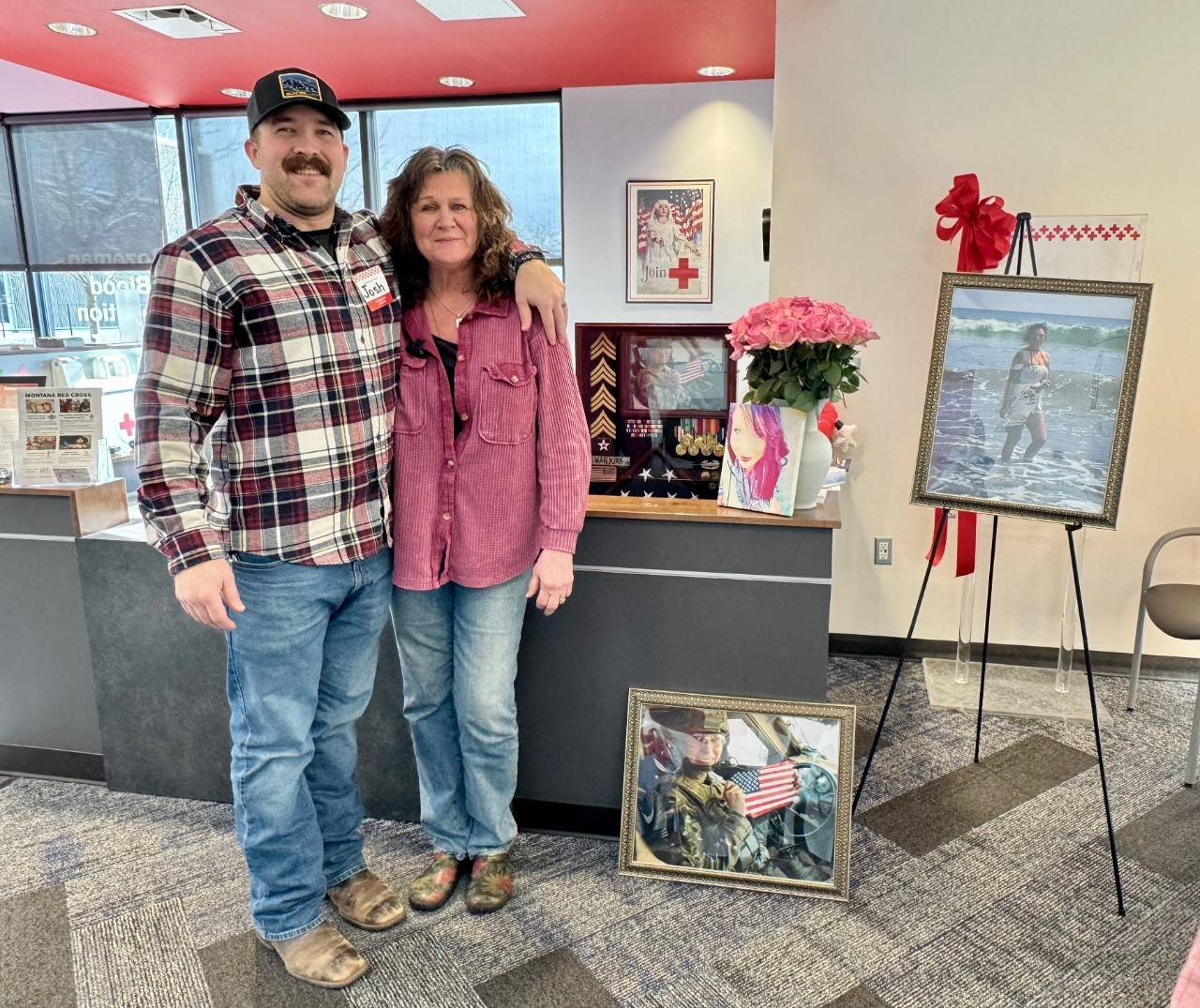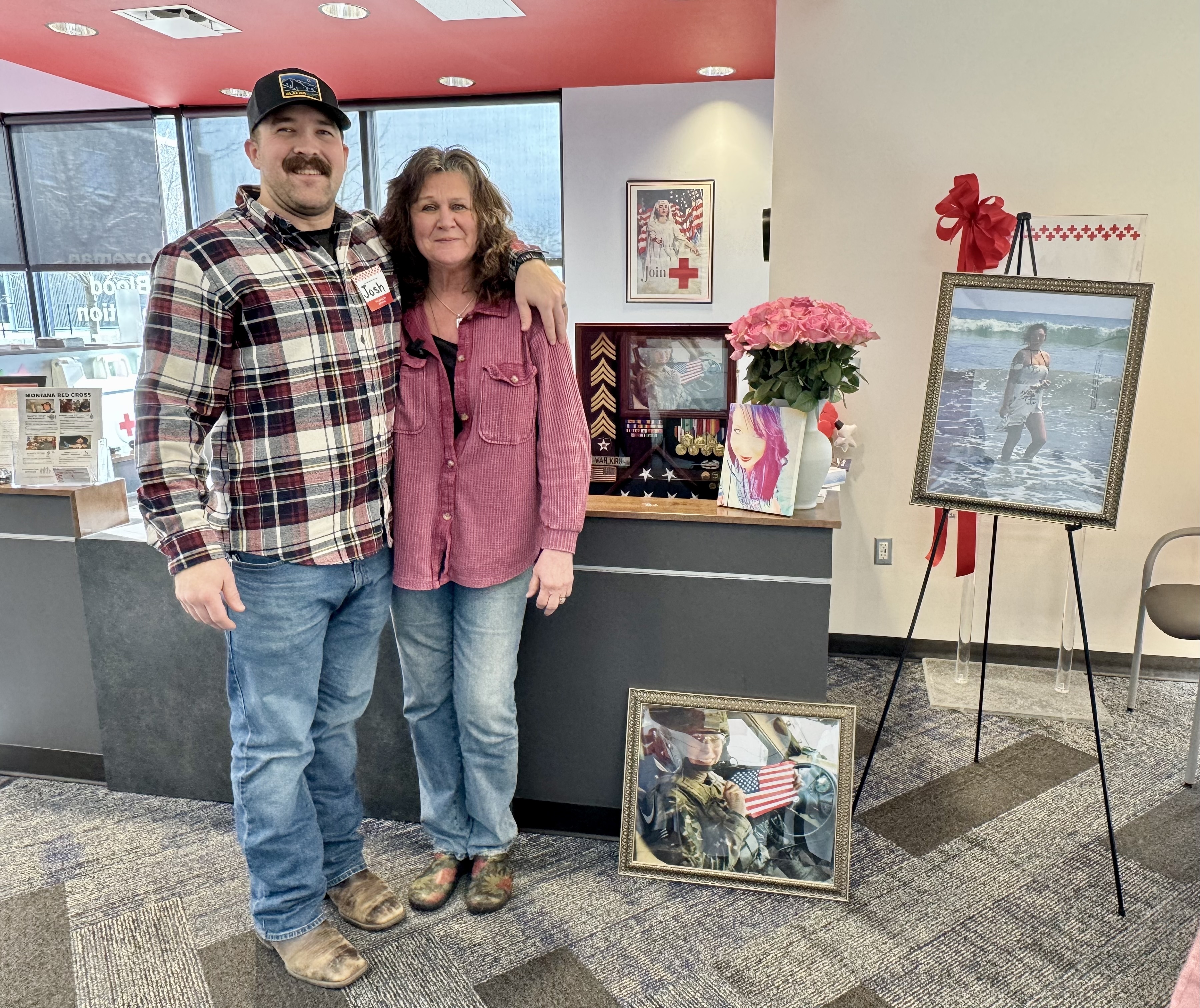 Twice each year, everyone who walks through the doors of the Bozeman Blood Donation Center is greeted by the face of Sgt. Lynessa VanKirk. Her portrait stands beside a photo of her in uniform, a display of her medals and the folded burial flag that marks a life of service.