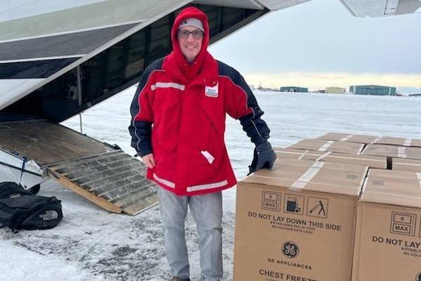Doug and other Red Cross volunteers worked alongside the Army National Guard to load planes with emergency supplies so families would have what they needed to make it through the winter. With waterways freezing and roads becoming impassable, access to many villages depended entirely on aircraft, making timely supply deliveries essential.
