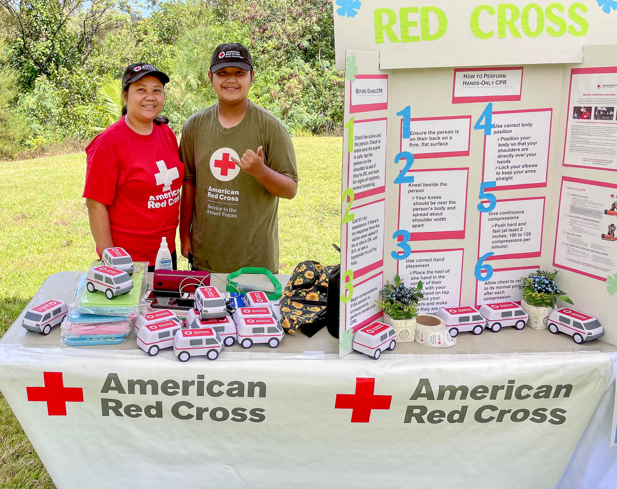 As he grew, so did his role. Today, he serves as president of the Hawaiʻi Chapter Red Cross Club for youth, just as his sister once did. The club’s members actively participate in community outreach, including installing smoke alarms, leading preparedness lessons and teaching life-saving skills.