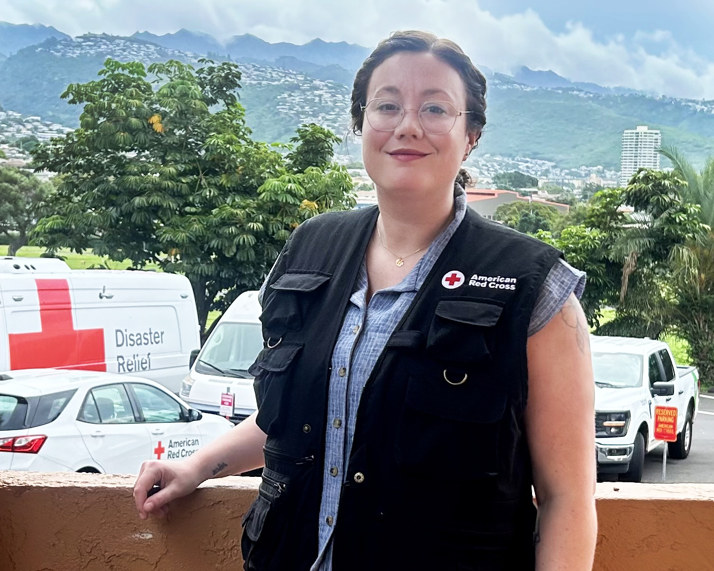After serving as assistant director of external relations for the Red Cross response in Hawai‘i, Mary Simkins repacked her bags to head to Guam to take on a similar role.