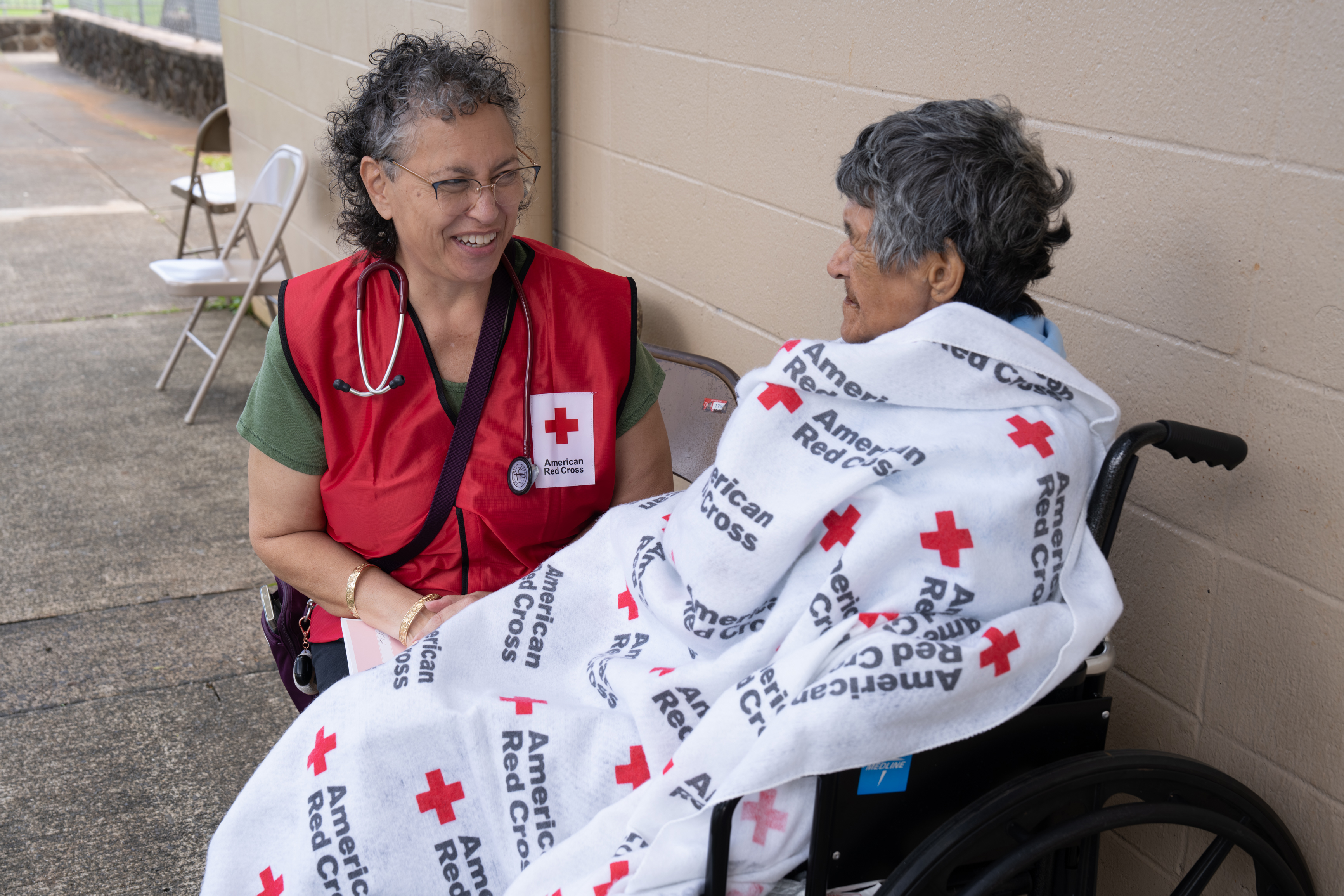 U’ilani Chow-Rule volunteers her medical skills and steady compassion to people staying in Red Cross emergency shelters across Hawai'i. (Photos by Mimi Teller/American Red Cross).