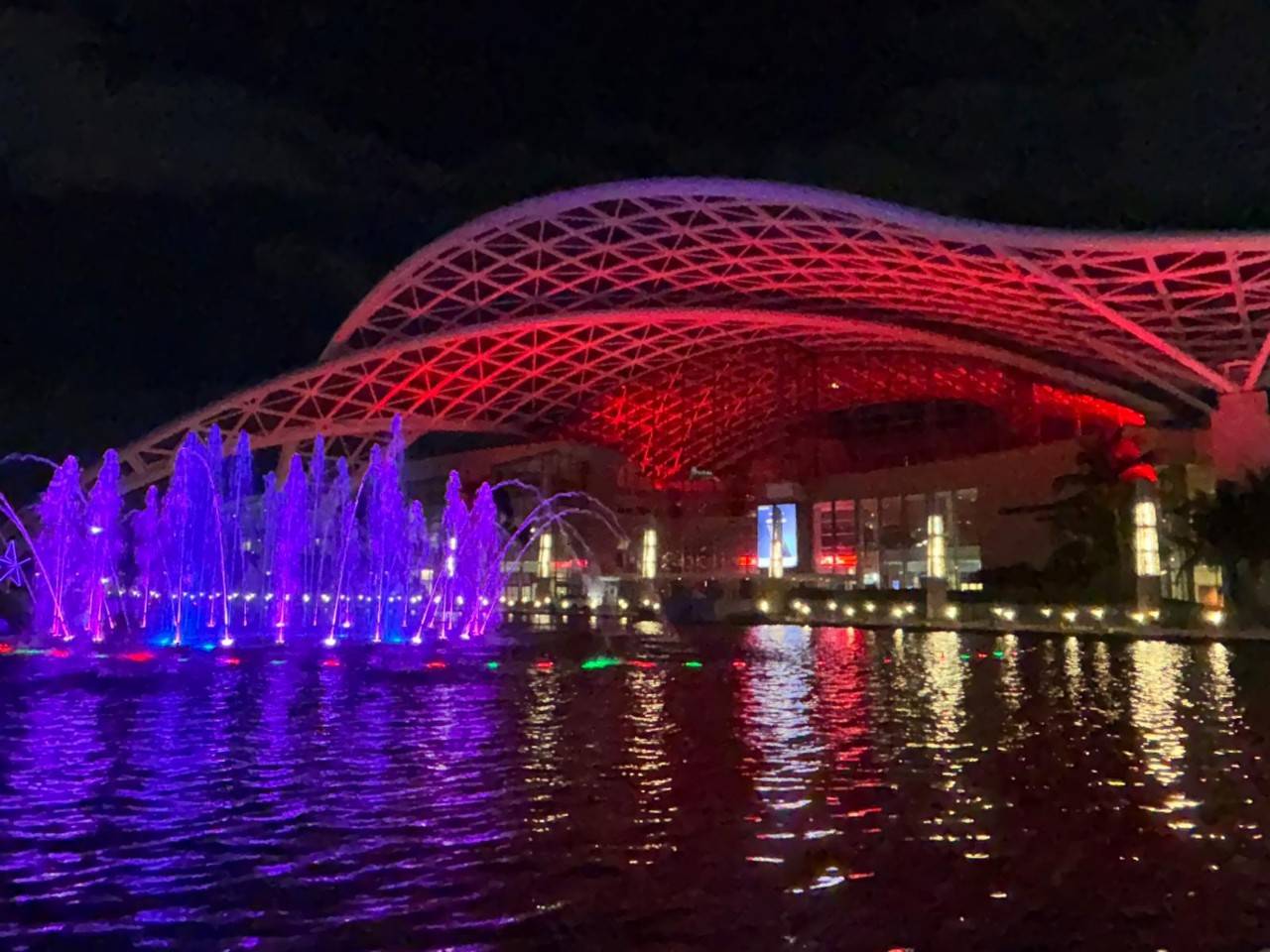 Centro de Convenciones fue uno de los más de 20 instalaciones que se iluminaron de rojo en honor al Mes de la Cruz Roja.