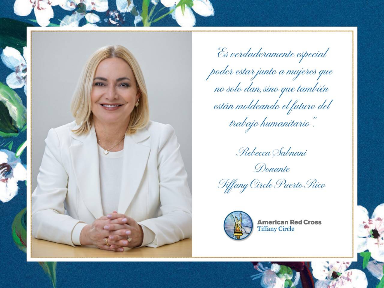 Rebecca Sabnani es miembro de la Junta Directiva de la Cruz Roja Americana Capítulo de Puerto Rico y donante del Tiffany Circle en Puerto Rico.