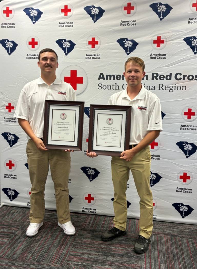 Camrin Northop and Jacob Mitchell were nominated to receive the Lifesaving Award for Professional Responders. This award is given by the American Red Cross to an individual, or team of individuals, who saves or sustains a life, outside of a medical setting, as part of their employment or while on duty and had an obligation to respond. The certificate is signed by the Chairman of the American Red Cross and the President and CEO of the American Red Cross.