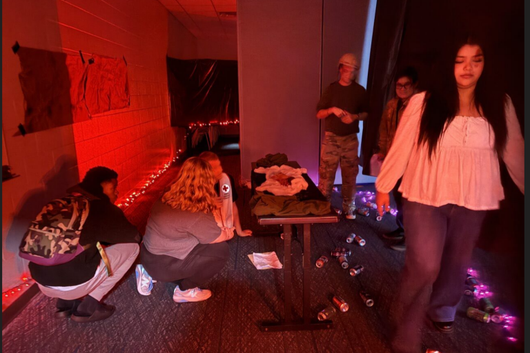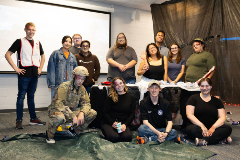 “The Horrors of War” exhibit was an interactive haunted house experience created by students in Dr. Amy Atchinson’s Humanitarian Aid and Crisis course. These students also participate in the national American Red Cross program called the Youth Action Campaign.