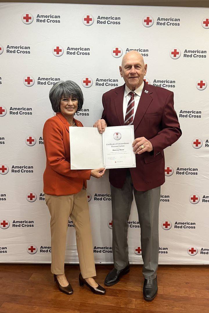 Harvey was awarded the Certificate of Extraordinary Personal Action (CEPA), which recognizes individuals who save a life without having received Red Cross training.