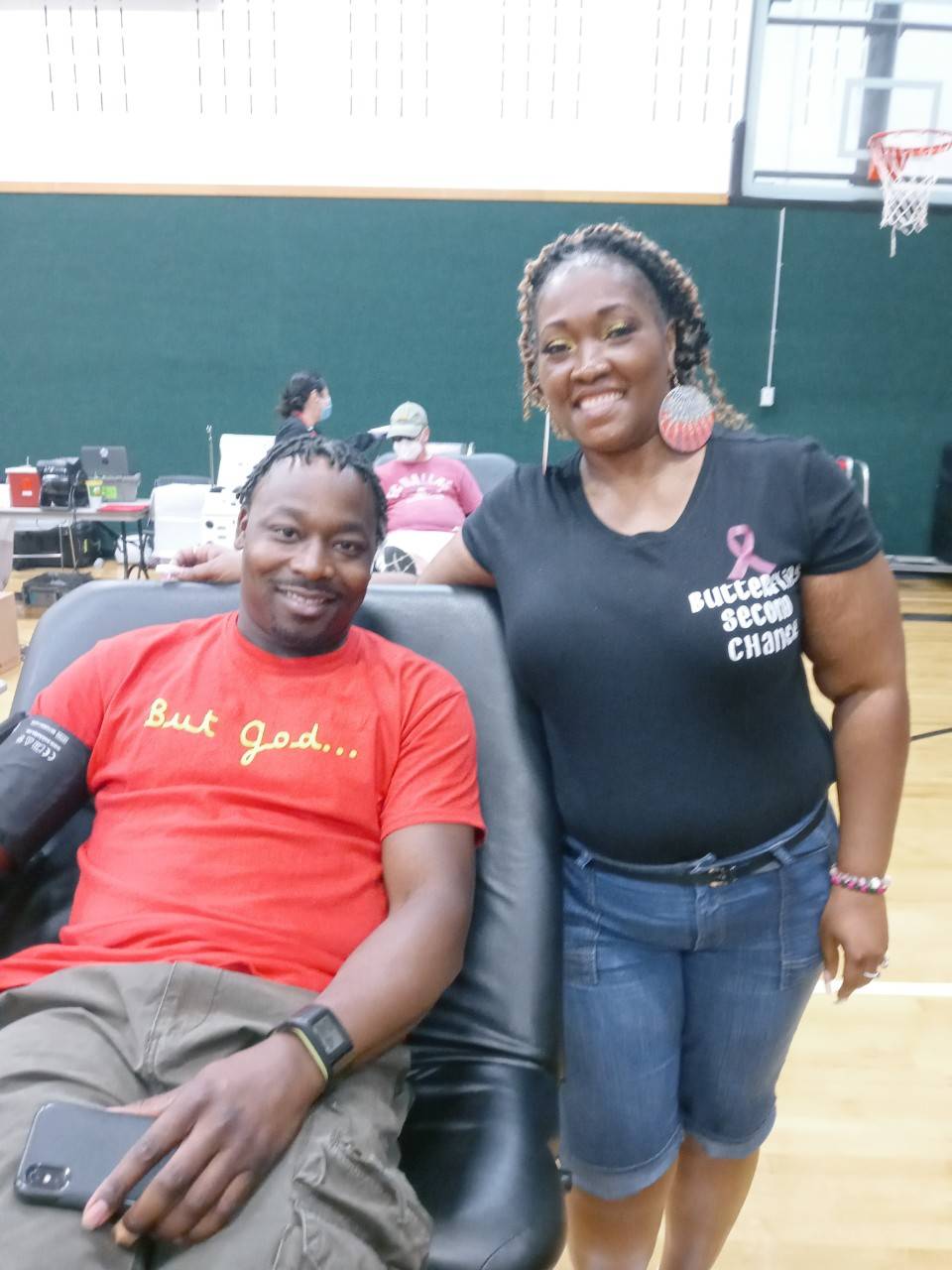 Shayna Criss supports a donor who made his donation at the blood drive she hosted at the Martin Luther King Center in Denton, TX.