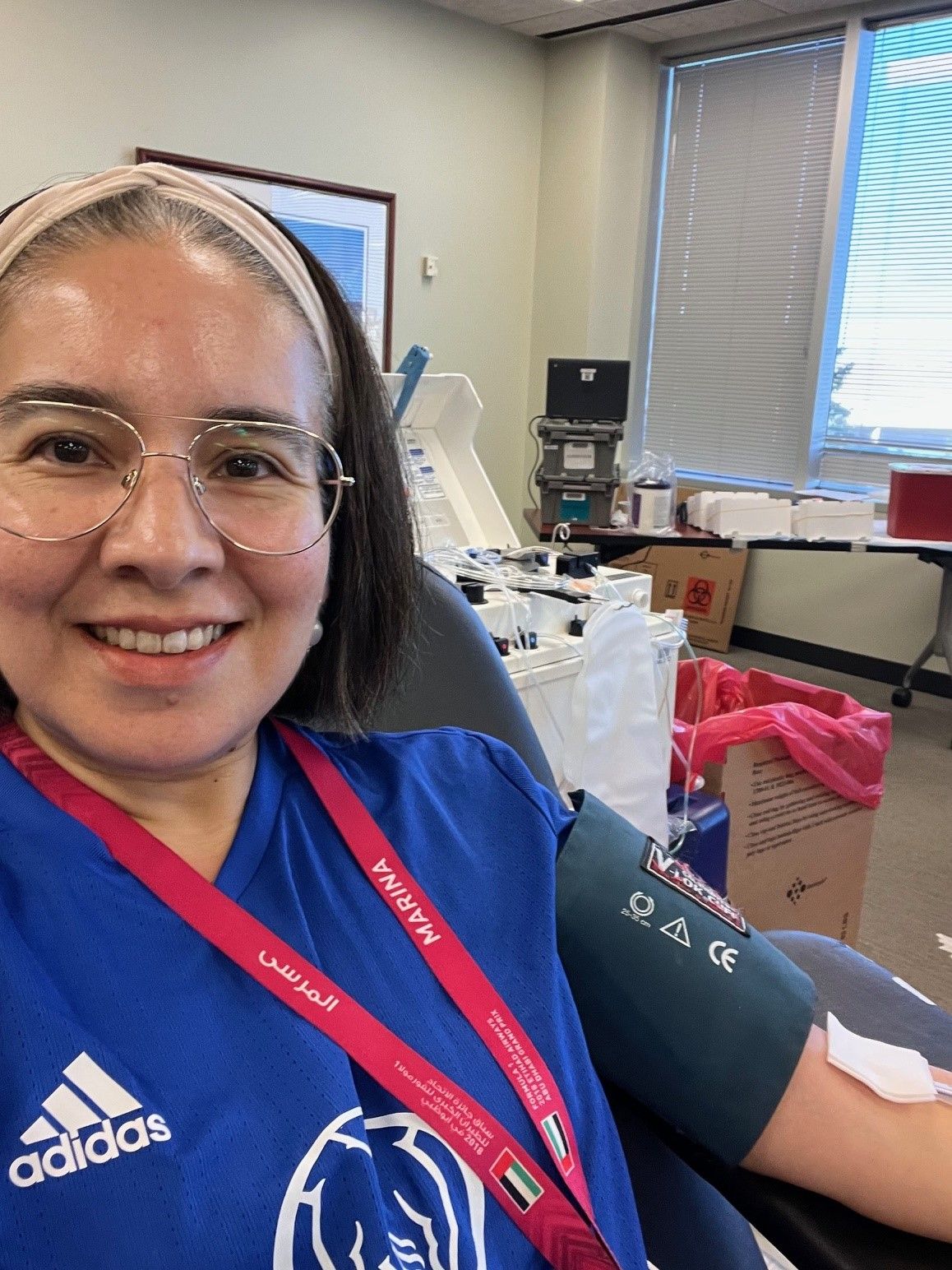 Carla donating blood at one of the blood drives she hosted through her work at Allstate.