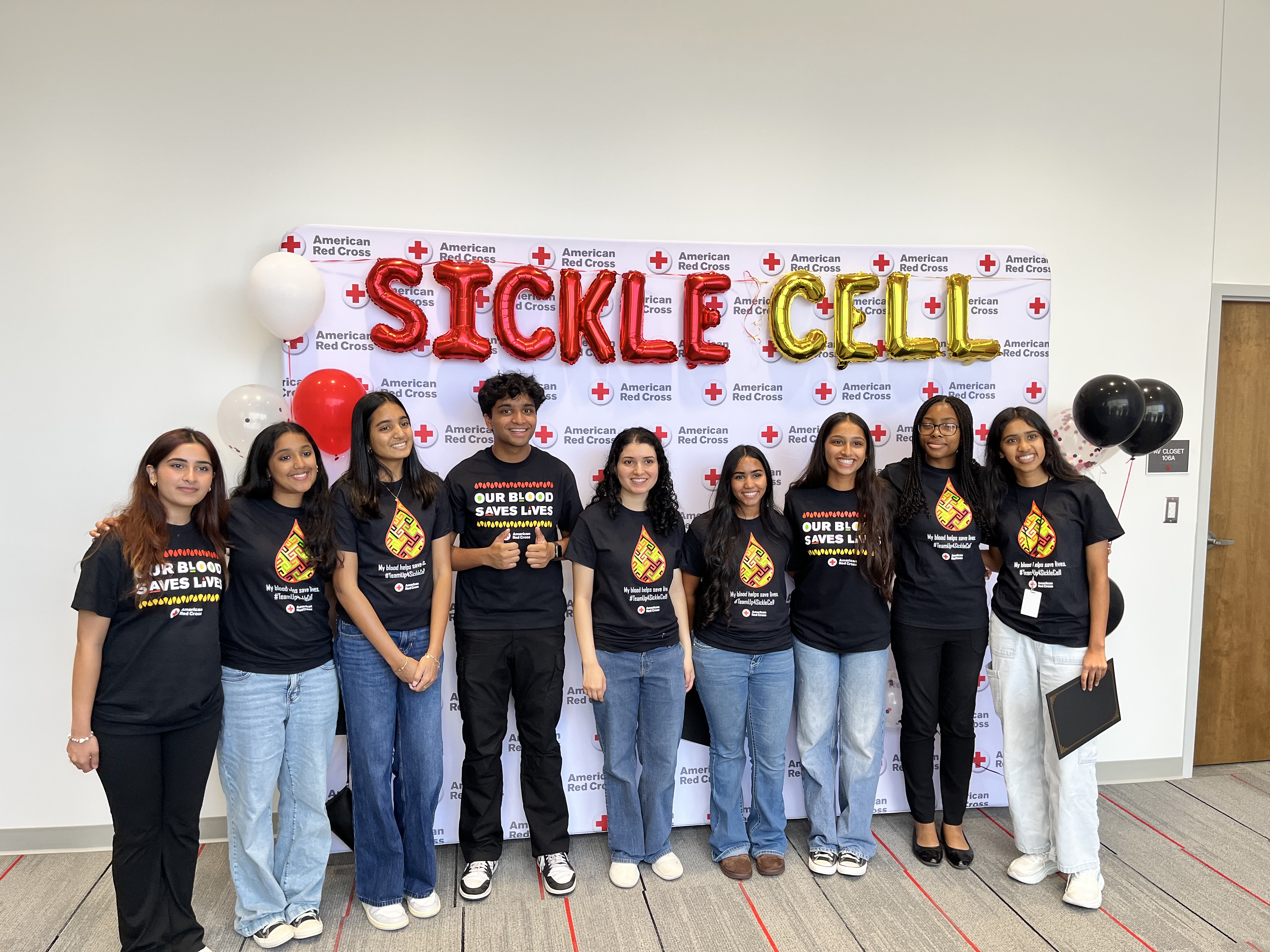 Shreya Jupelli (center) with her fellow youth volunteers at the Red Cross Sickle Cell Symposium in September 2025.