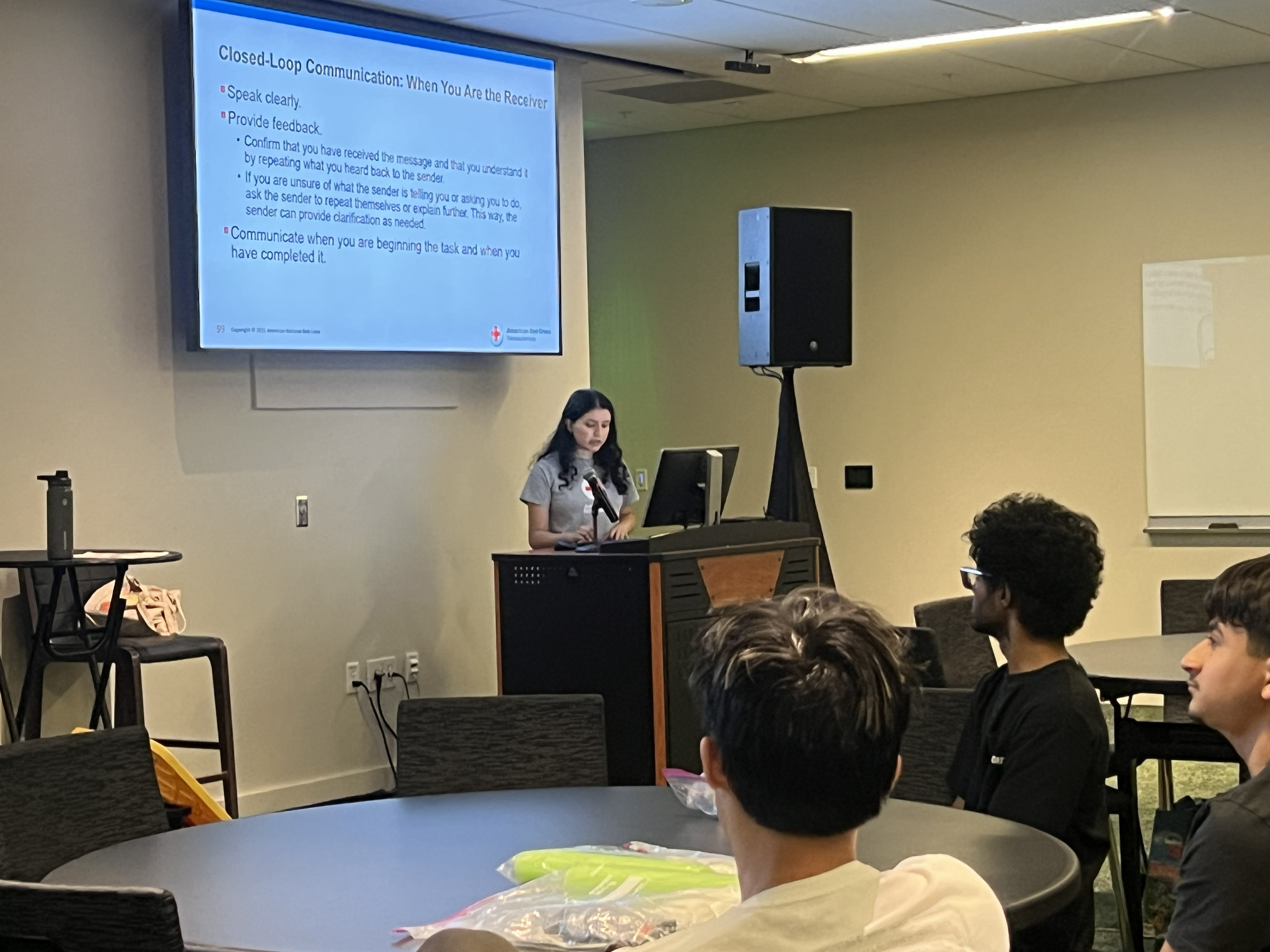 Shreya Jupelli presenting on how to start a Red Cross Club.