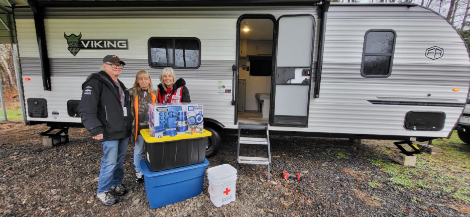 Regena receives a new RV and Red Cross 'Welcome Home Kits.'
